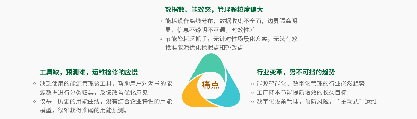 企業(yè)在生產(chǎn)運營過程中所用能耗大,各環(huán)節(jié)粗礦式經(jīng)營,成本居高不下,無法準確定位關(guān)鍵癥結(jié)所在。工廠能源管理系統(tǒng)解決方案對企業(yè)使用的水、電、熱、蒸汽、燃氣等各類能耗計量、分析,可更清晰地獲悉不同設(shè)備、車間、產(chǎn)線、消耗等方面的能耗動態(tài)監(jiān)控和數(shù)據(jù)化管理,幫助用戶實現(xiàn)能耗統(tǒng)計分析,節(jié)能減排,避免“跑冒滴漏”現(xiàn)象,提高能源利用率,降低用戶成本,提高風險預判能力。