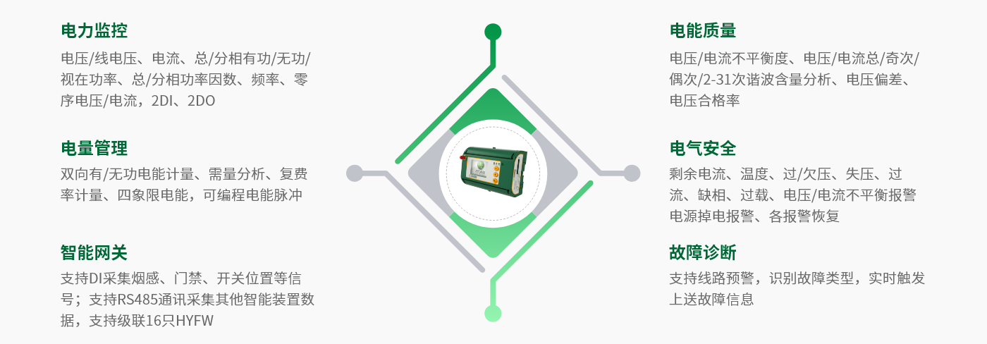 簡介: HYFW是—款集電力監(jiān)控、電能計量管理、電能質(zhì)量分析、電氣安全于一體的全息電高端智慧式用電測控終端??勺鳛橹腔郯踩秒?、配電運維、智能配電、能耗監(jiān)測、電力需求側(cè)管理等系統(tǒng)的傳感終端,組網(wǎng)模式多樣、接線方便、便于安裝。
